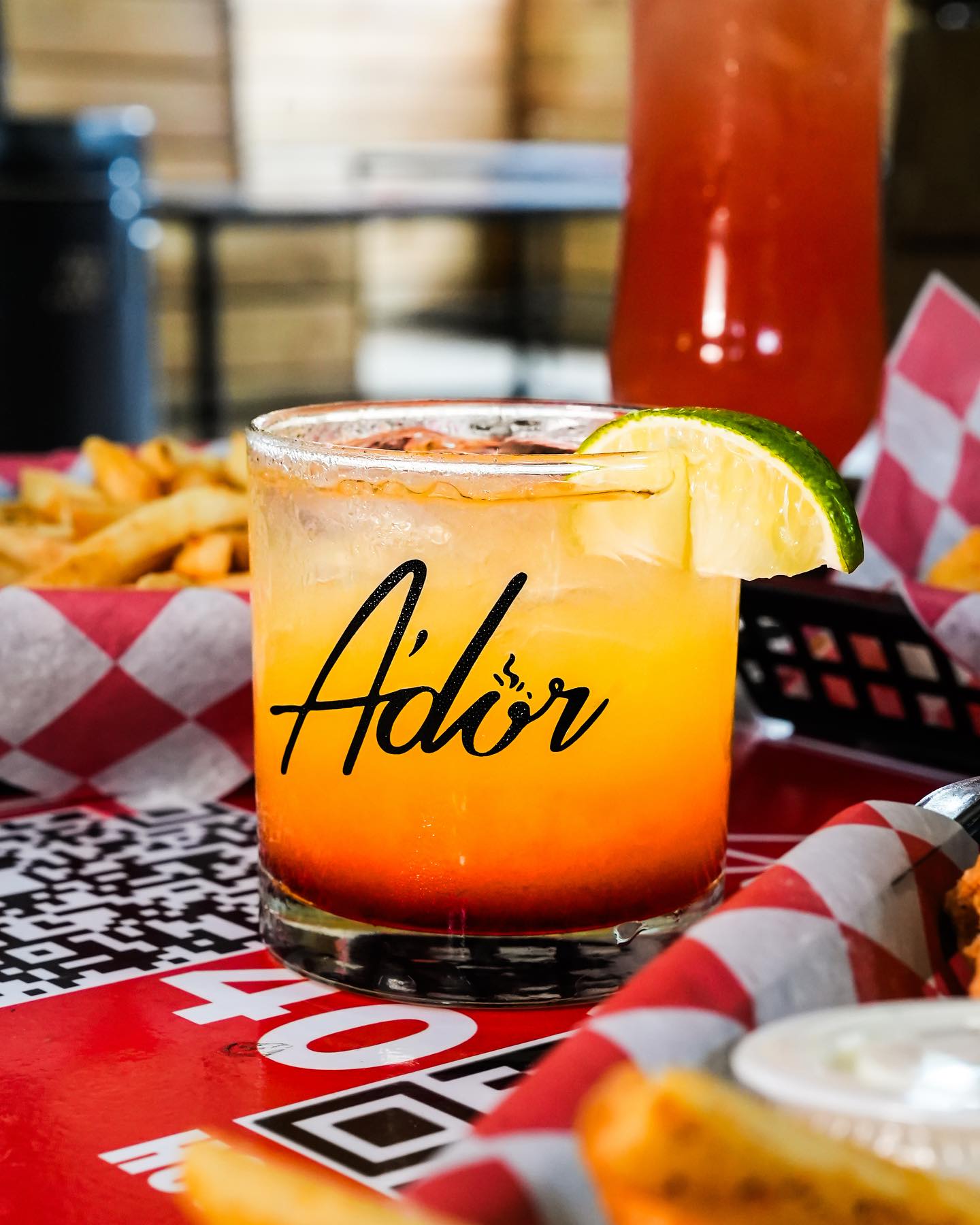 A Sweet taste of mango vodka and pineapple with a tajin Rim muy caliente
